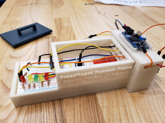 "A group of entrepreneurial stakeholder sin the wearable technology sector has approached our team to design a proof-of-concept prototype for a new wearable device. Our device is required to take data input by a sensor and output it in a meaningful way that is easily understood by a user. We are required to prototype our device, demonstrating how it will function and how it will be worn. Our team must determine how the sensor will function, how inputted data will be interpreted using physical computing tools, build a 3D-printed support frame that securely houses all physical computing elements, and finally demonstrate functionality and correctness."